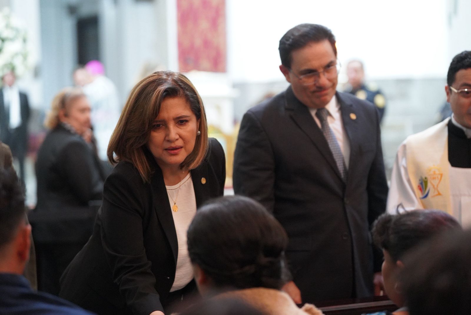La vicepresidenta de la República, Karin Herrera; el ministro de Gobernación, Marco Antonio Villeda; viceministros de Gobernación; miembros de la cúpula policial, elementos del Ejército de Guatemala, decenas de compañeros y familiares de las víctimas asistieron al acto.