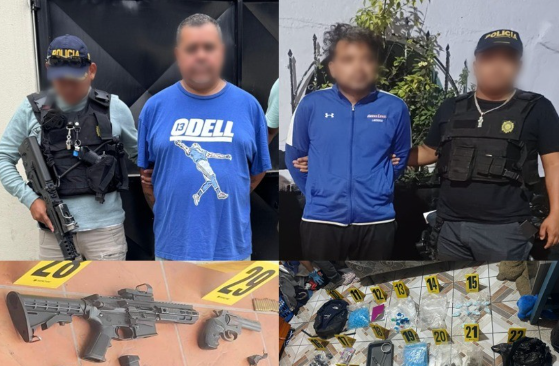 En el inmueble donde detuvieron al primero de los mencionados, los agentes de la PNC localizaron ilícitos como una carabina, un revólver, 100 recipientes con cocaína, 65 bolsas con marihuana, 30 municiones para arma de fuego, 13 celulares y 60 mil 741 quetzales, posiblemente de la venta y distribución de drogas.