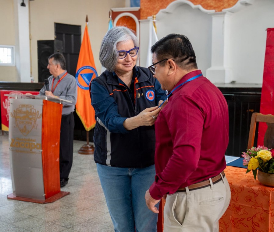Zacapa, 20 feb (AGN).– Con el objetivo de ser parte de las acciones de respuesta, prevención y mitigación de los riesgos de desastres naturales, la secretaria ejecutiva de la Coordinadora Nacional para la Reducción de Desastres (Conred), Claudinne Ogaldes, juramentó a la Coordinadora Municipal para la Reducción de Desastres (Comred), en el municipio de Zacapa, conformada por personas del sector público, privado, oenegés y cuerpos de socorro.