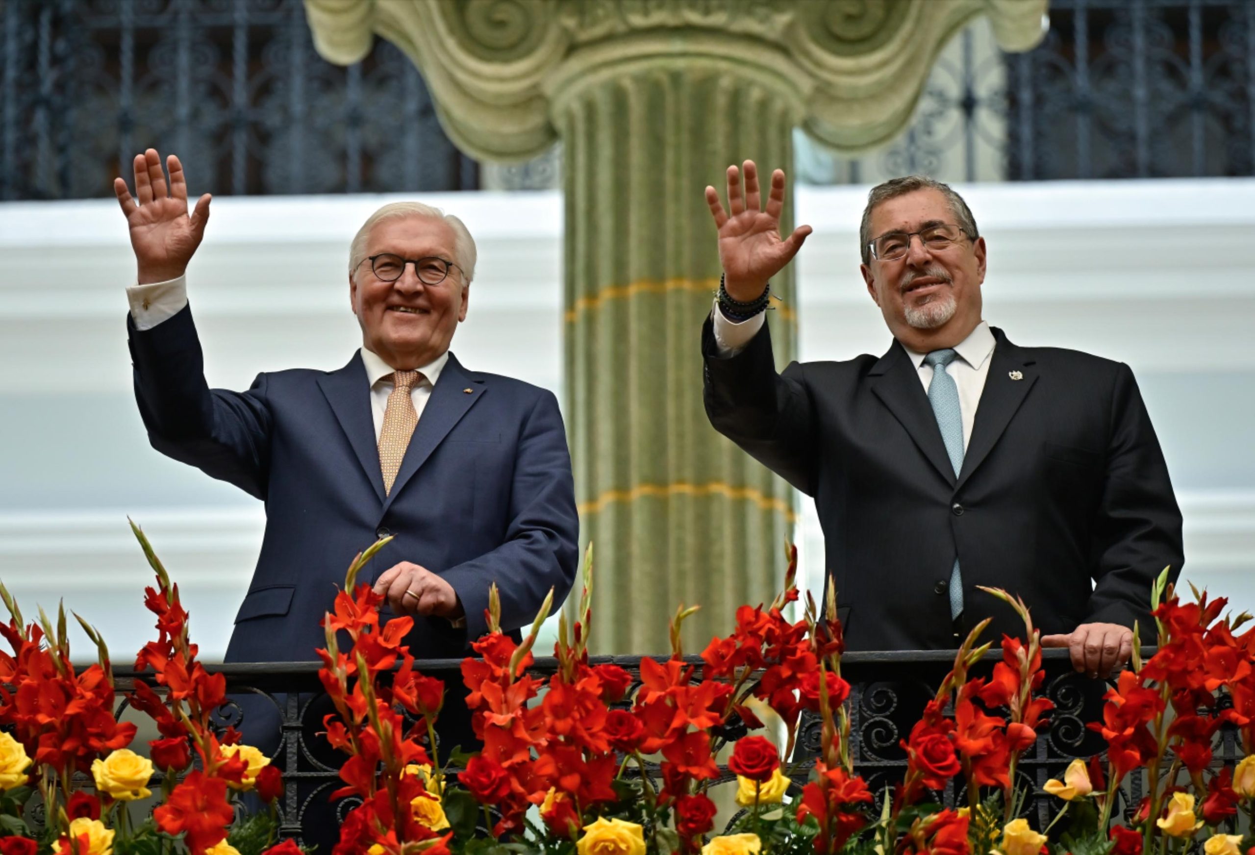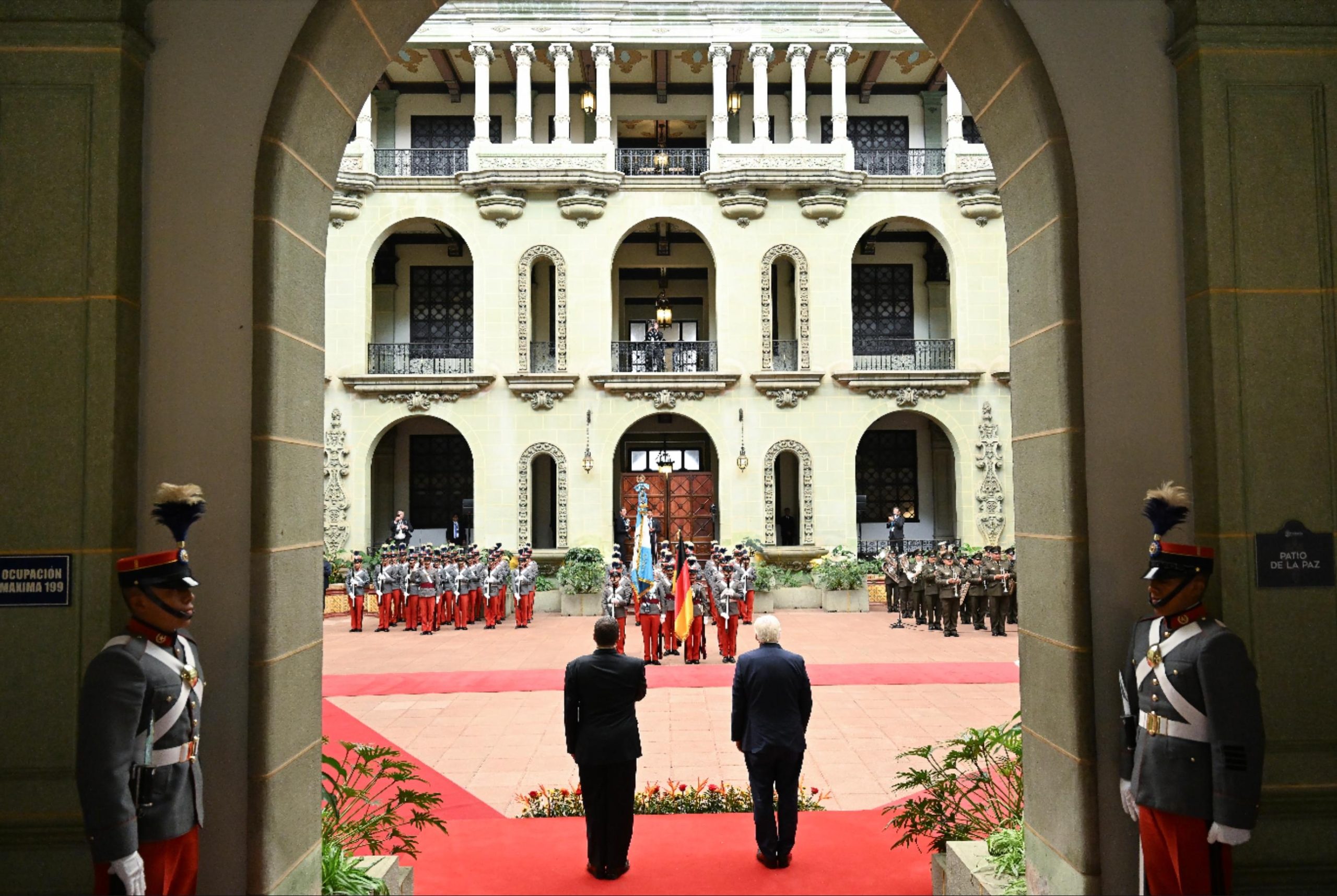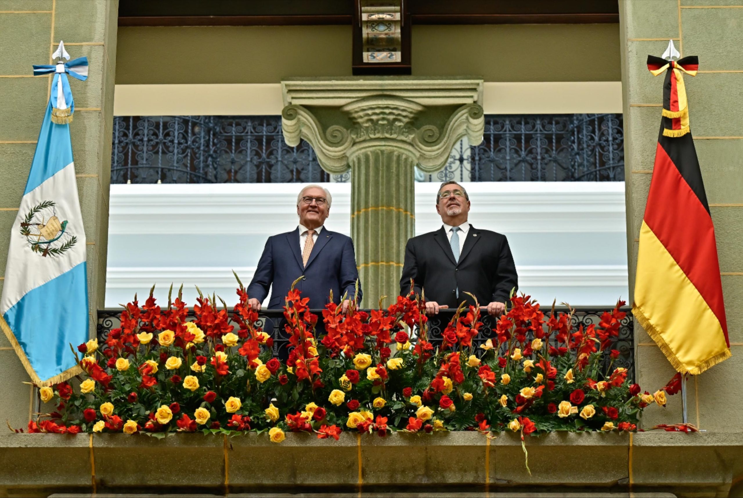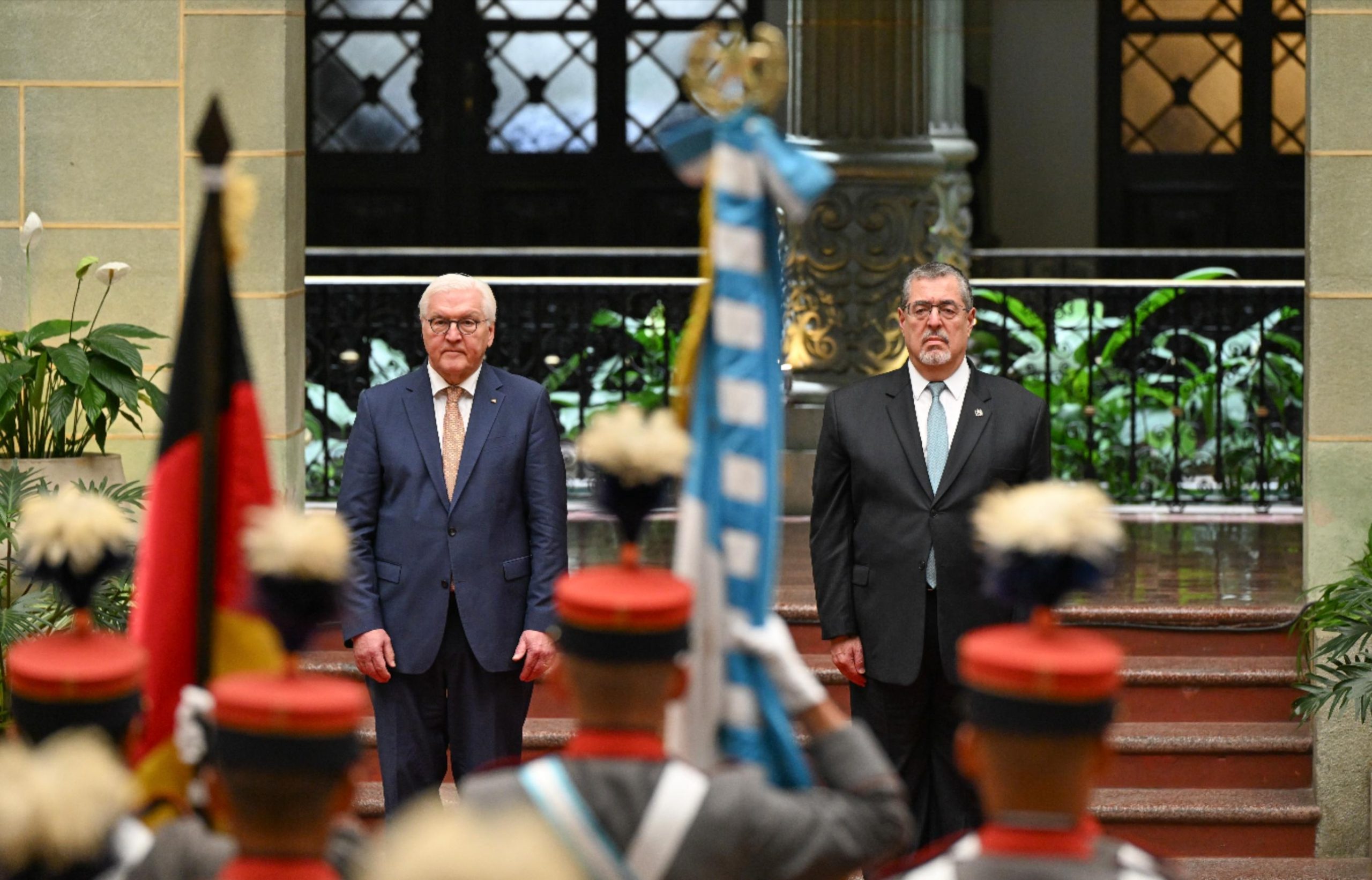Ciudad de Guatemala, 17 mar (AGN).– Este día, Guatemala recibió la visita oficial del presidente de Alemania, Frank-Walter Steinmeier, quien arribó en horas de la mañana a la Fuerza Aérea Guatemalteca (FAG). Posteriormente, se trasladó al Palacio Nacional de la Cultura, donde fue recibido por el presidente Bernardo Arévalo.