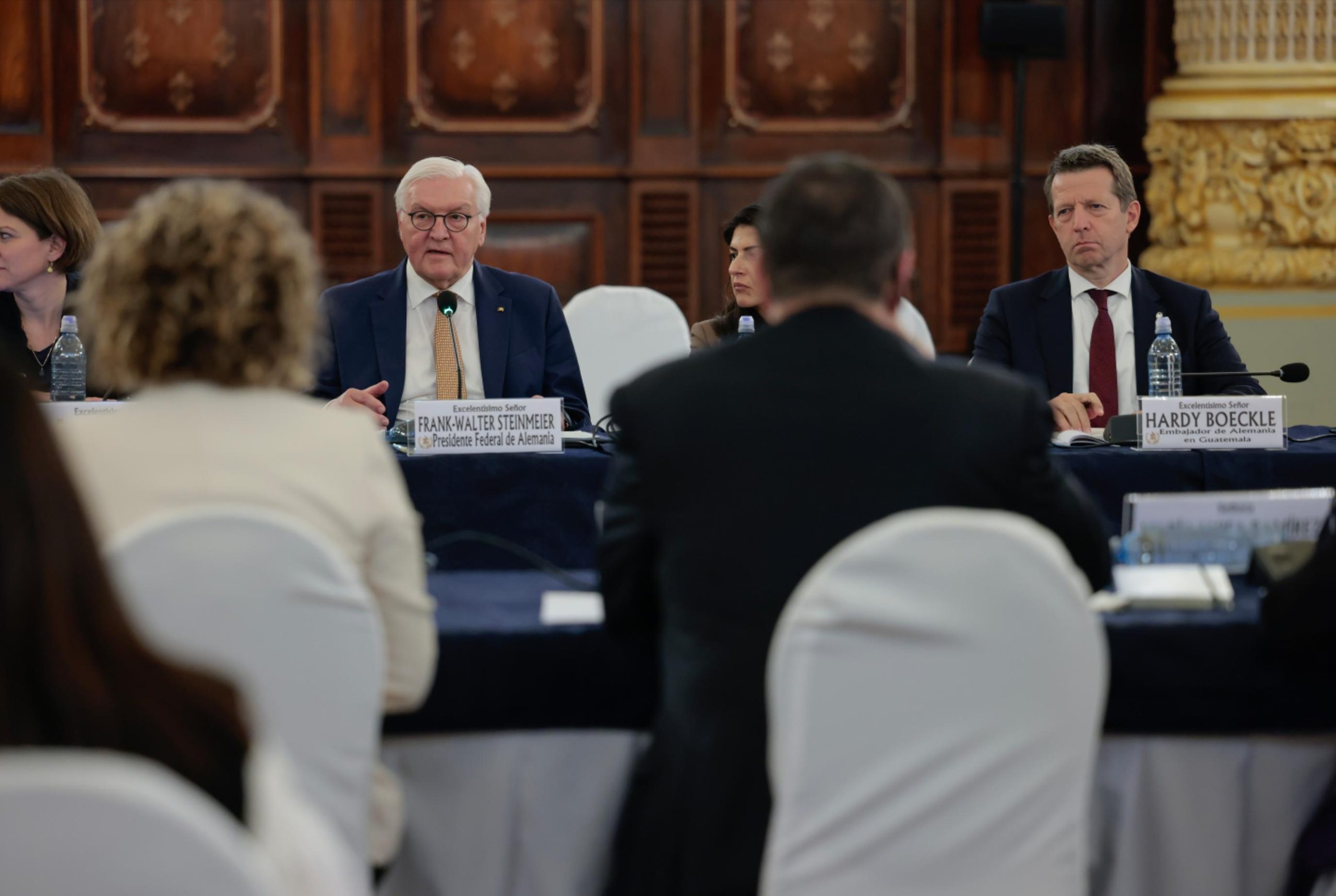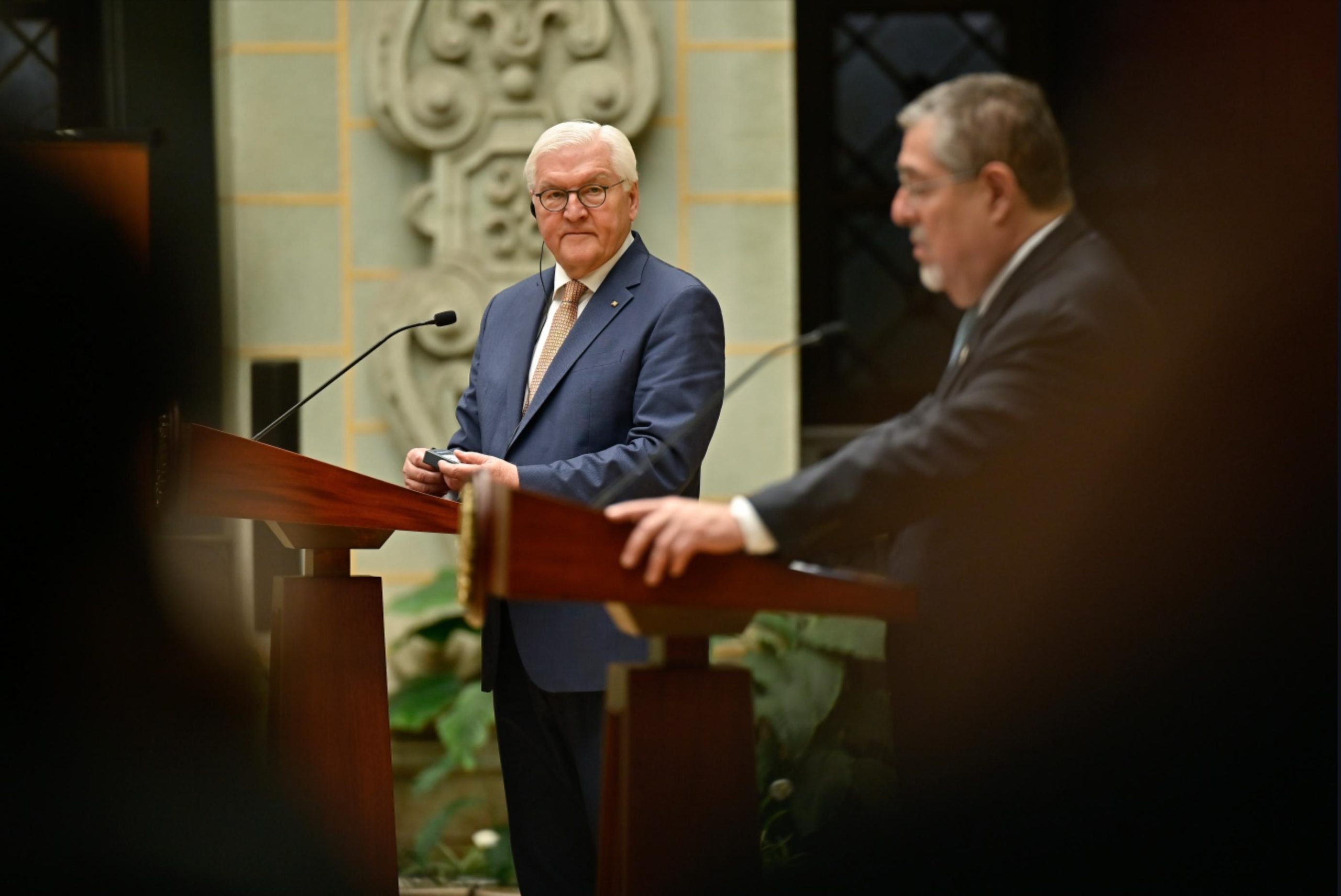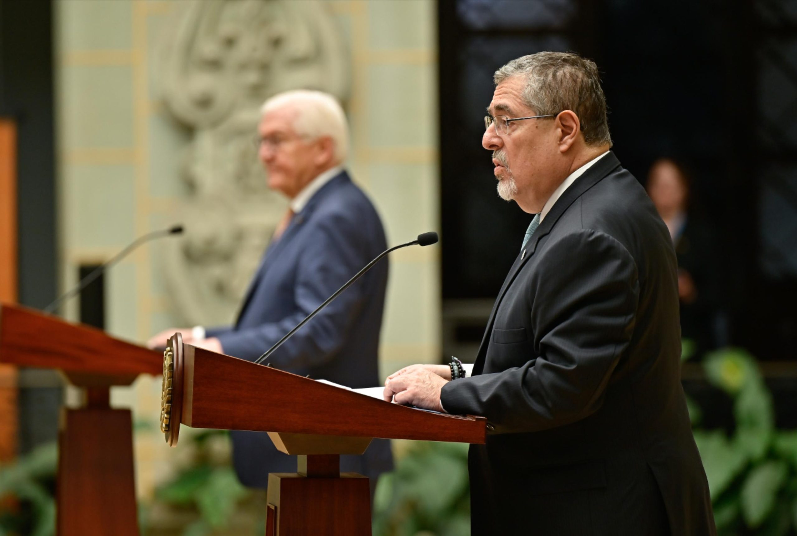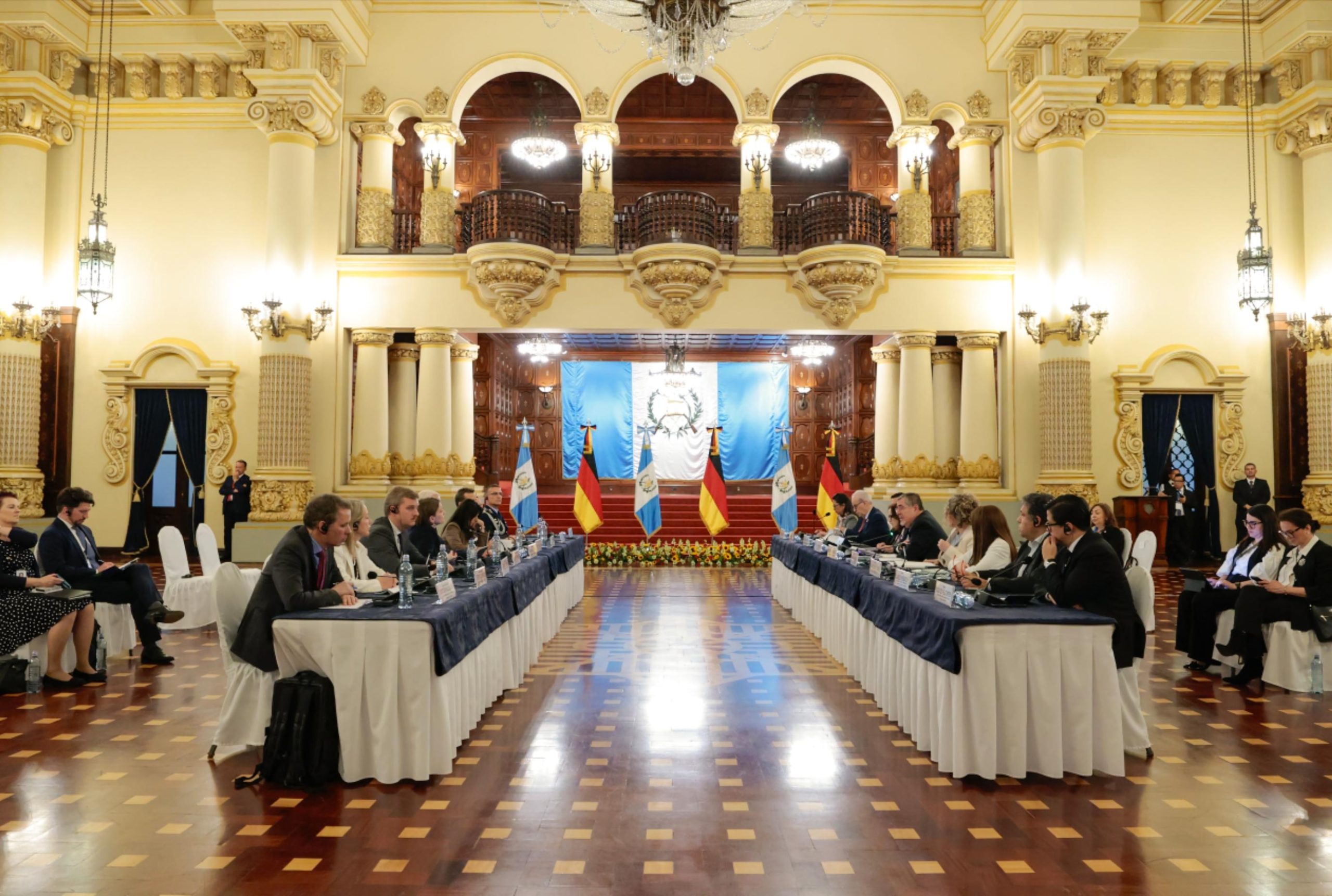 Ciudad de Guatemala, 17 mar (AGN).– Este día, Guatemala recibió la visita oficial del presidente de Alemania, Frank-Walter Steinmeier, quien arribó en horas de la mañana a la Fuerza Aérea Guatemalteca (FAG). Posteriormente, se trasladó al Palacio Nacional de la Cultura, donde fue recibido por el presidente Bernardo Arévalo.