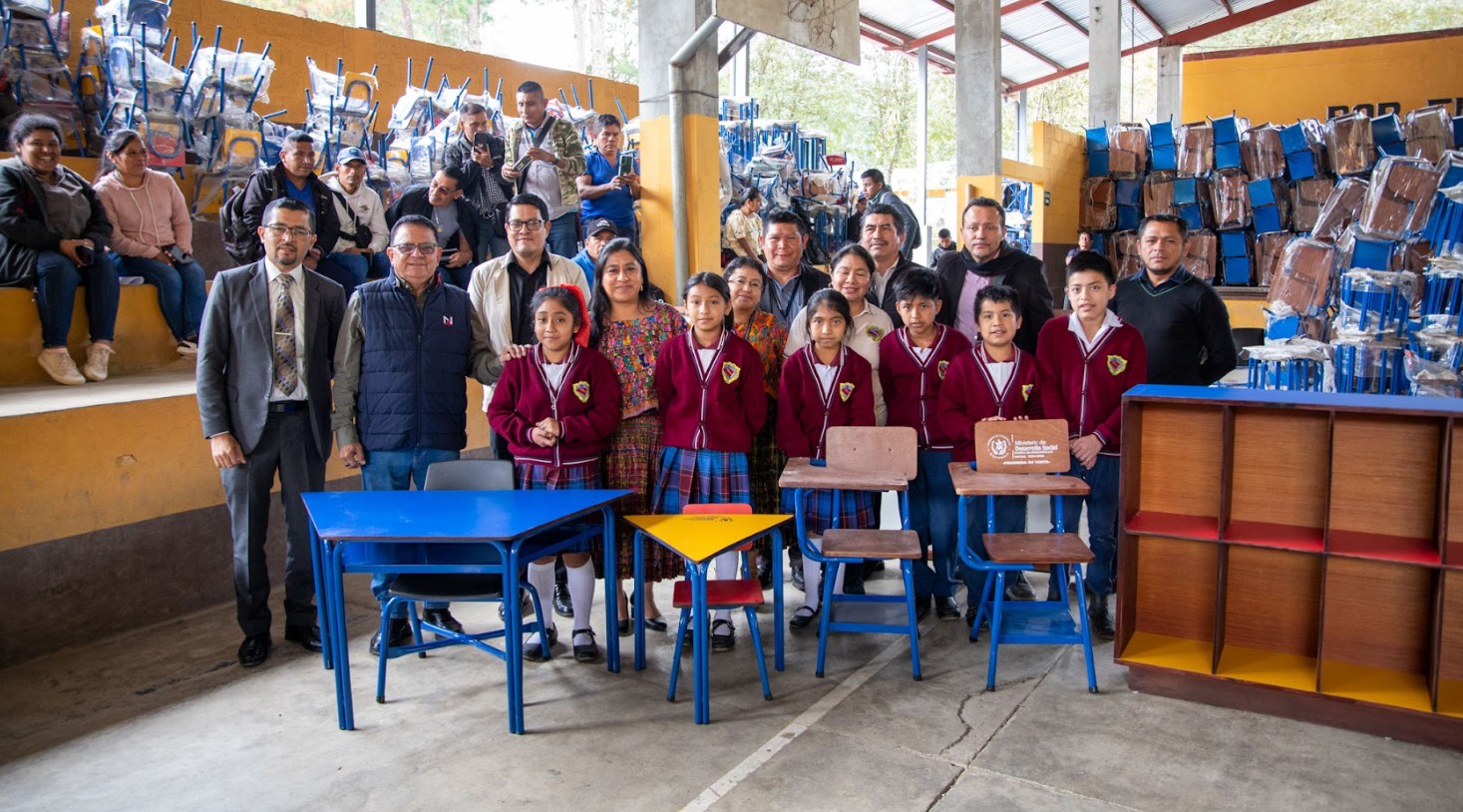 La dotación incluyó 3 mil 244 pupitres, 60 pizarrones, 42 organizadores, 214 mesas hexagonales y 108 mesas trapezoidales, recursos que permitirán mejorar las condiciones pedagógicas y fortalecer los ambientes de aprendizaje en beneficio de niñas, niños y jóvenes del departamento.