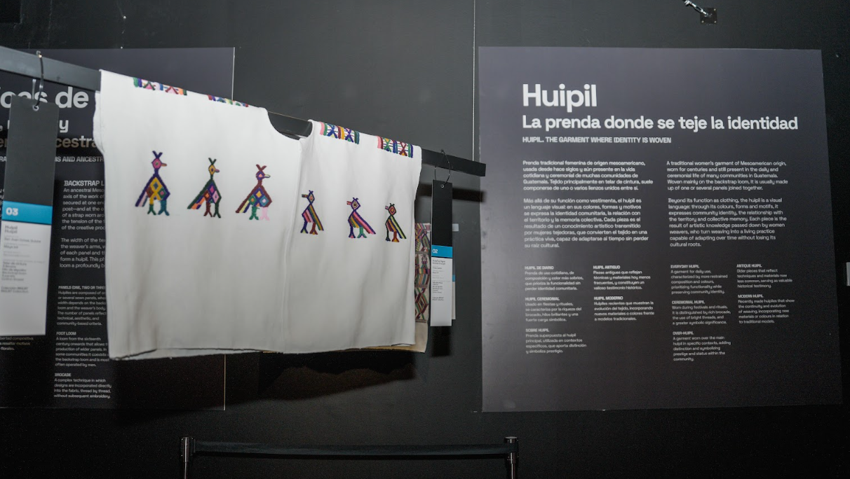 Arte textil en Guatemala: diseño e identidad permanecerá abierta al público en la capital española hasta el 3 de mayo, mostrando piezas provenientes de diversas regiones del país y de aportes de las comunidades que conforman el Movimiento Nacional de Tejedoras.
