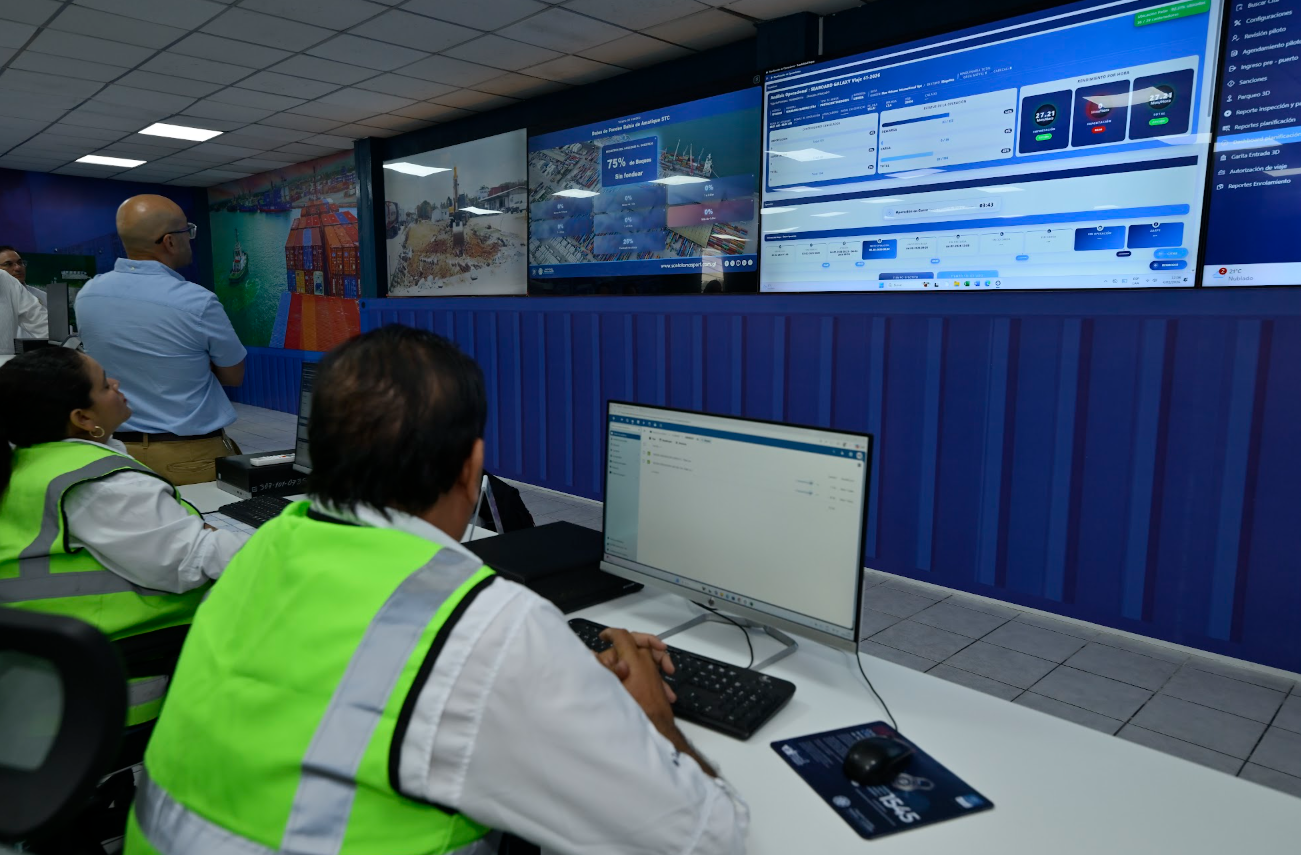El centro cuenta con pantallas que muestran en tiempo real los rendimientos operativos, el estatus de los buques y la planificación de citas para el ingreso al puerto. Esta información permite anticipar acumulaciones, alertar a los equipos de seguridad y ejecutar acciones directas para evitar colapsos, especialmente en el acceso vial y en el atraque de buques.