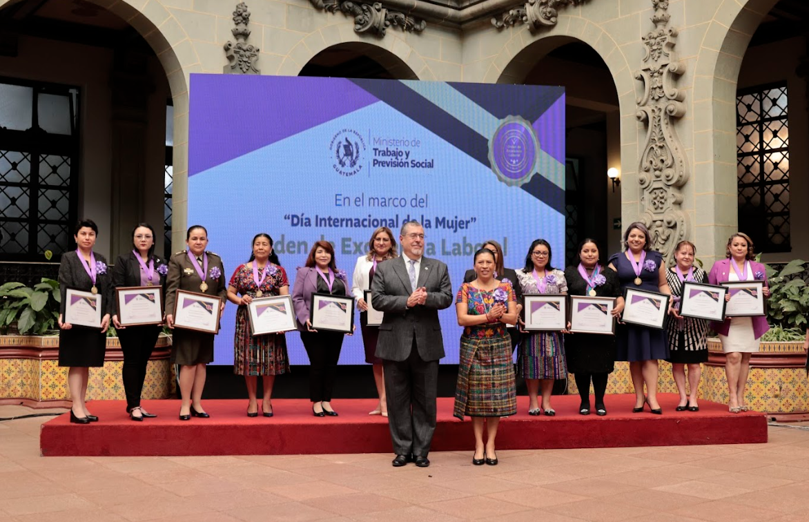 Ciudad de Guatemala, 4 mar (AGN).- El Ministerio de Trabajo y Previsión Social (Mintrab), como cada año, entregó la Orden de Excelencia Laboral a mujeres que se destacan en sus puestos de trabajo, en el marco del Día Internacional de la Mujer, reconociendo que cada día su labor contribuye a construir un país mejor y a saldar esas brechas que continúan afectando a millones de mujeres guatemaltecas.