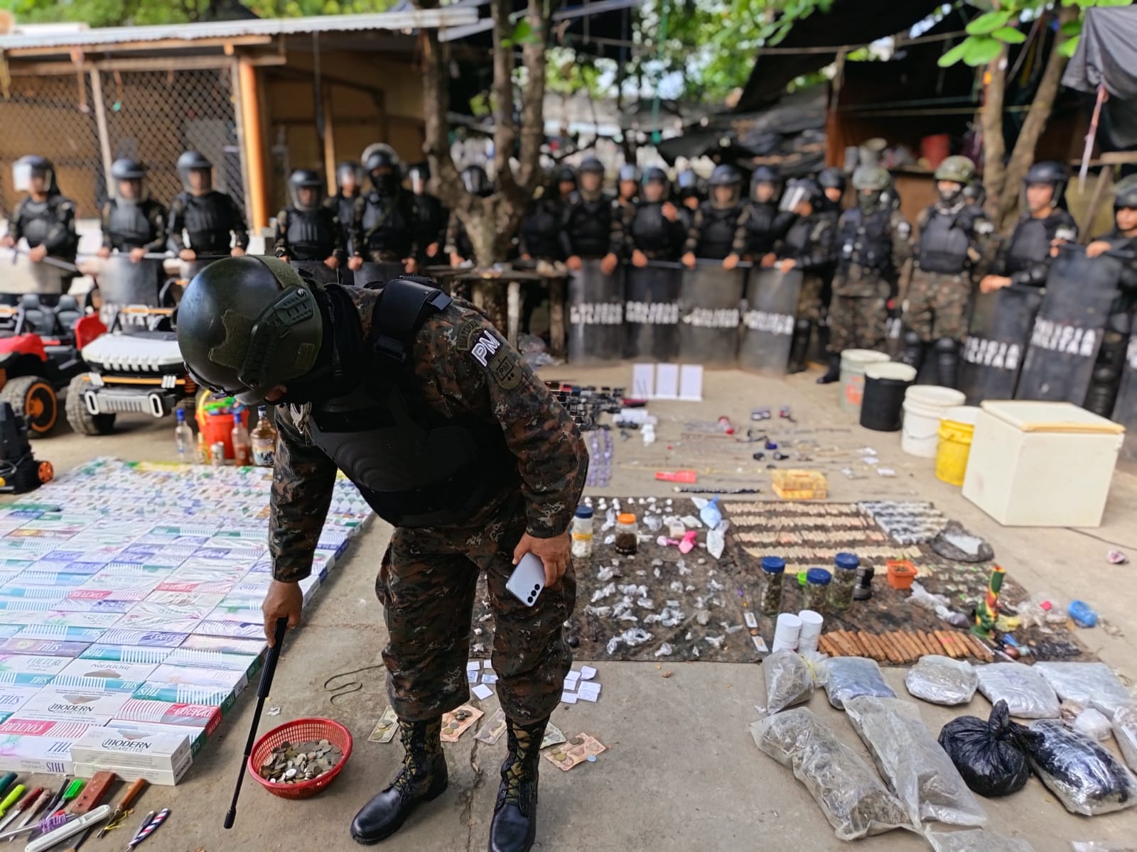 En el operativo participaron agentes de la Policía Nacional Civil (PNC), personal del Sistema Penitenciario y elementos del Ejército de Guatemala, quienes ingresaron al recinto para inspeccionar distintos sectores del penal y retirar artículos prohibidos.